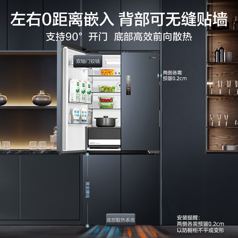 2、这大冰箱颜值没的说,是我想要的,主要是冰箱留位置有点窄了,在网上找了好久才找到的这款冰箱,真的是严丝合缝了,挺不错的,好评。
