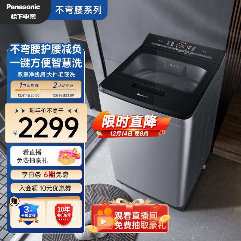 松下(Panasonic)波轮洗衣机全自动 不弯腰系列 桶自洁免清洗 一键操作 10公斤大容量 以旧换新 XQB100-USLKA价格:2699.00元!