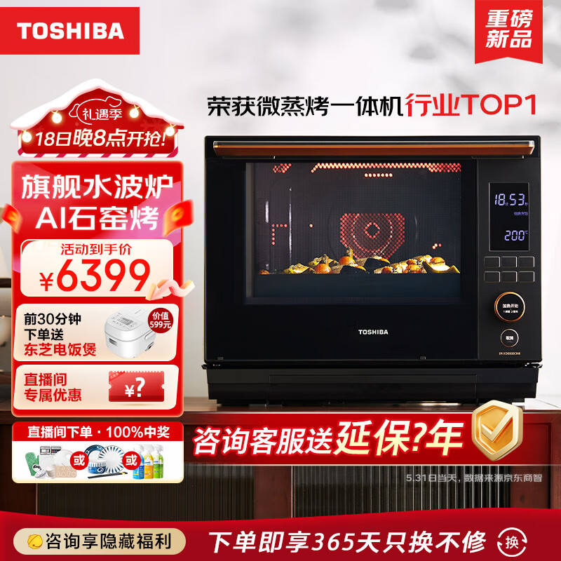 东芝(TOSHIBA)原装进口微蒸烤一体机 水波炉 家用智能变频台式微波炉蒸烤箱空气炸 石窑料理炉 ER-XD5000 30L价格:7599.00元!