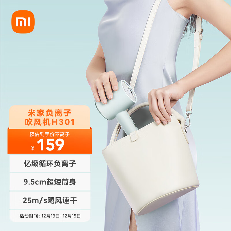 米家 小米电吹风 速干吹风机 H301松霜绿 负离子护发 礼物推荐价格:159.00元!