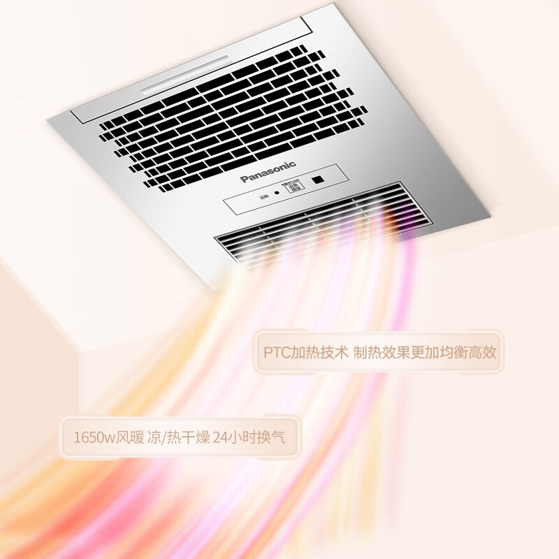 2、松下浴霸风暖排气扇换气浴室暖风机集成吊顶式一直在用,热风出得快,很不错,现在买了新房又买了两部这次还送排风管,发货快,快递神速,五星好评!