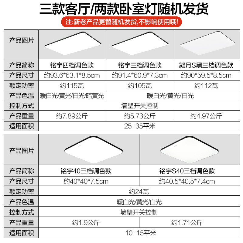 1、卧室灯已经收到了,是简约超薄的款式,安装方便,灯光有3种颜色,冷光和暖光都有,光线特别好。非常满意的一次购物。