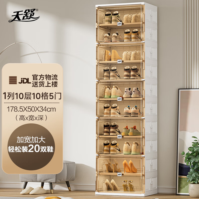 天舒免安装折叠透明鞋盒简易鞋柜门口玄关鞋架鞋子收纳盒 20双1列10层价格:499.00元!