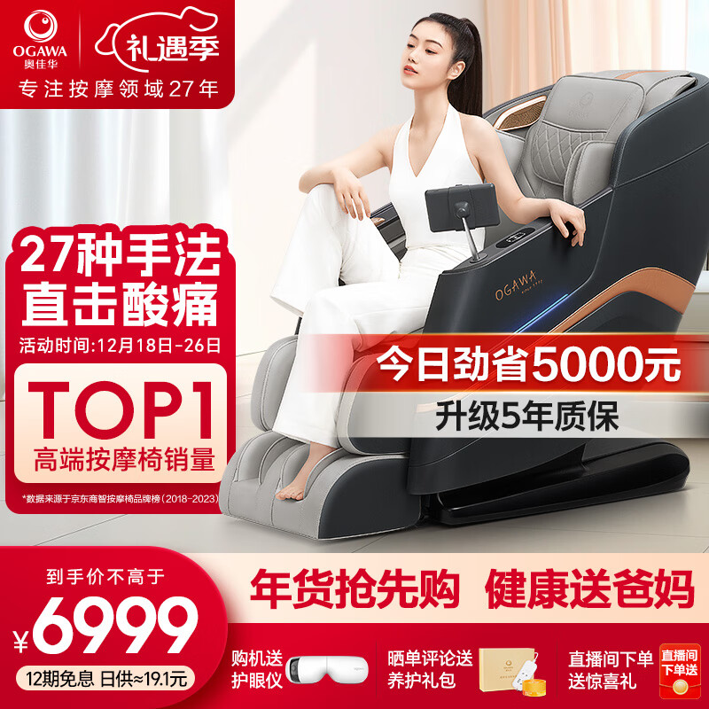 奥佳华(OGAWA)按摩椅家用太空舱2023新款全自动按摩沙发舒适零重力全身3D机芯中医推拿按摩椅子送老人 创享家M80 幻影灰价格:11999.00元!