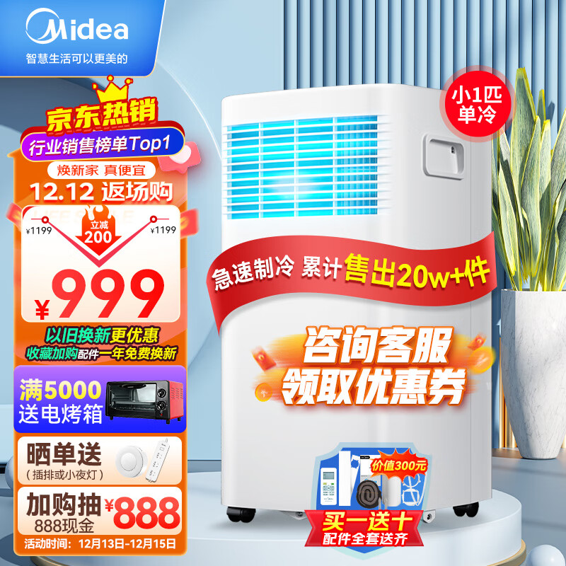 美的(Midea)移动空调小1匹单冷 家用厨房一体机免安装便捷立式空调 KY-15/N7Y-PHA价格:999.00元!