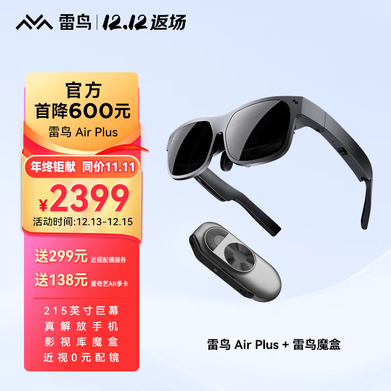 雷鸟Air Plus?智能AR眼镜215英寸高清观影眼镜非VR眼镜 魔盒终端[lPhoneDP手机适用]?价格:2999.00元!