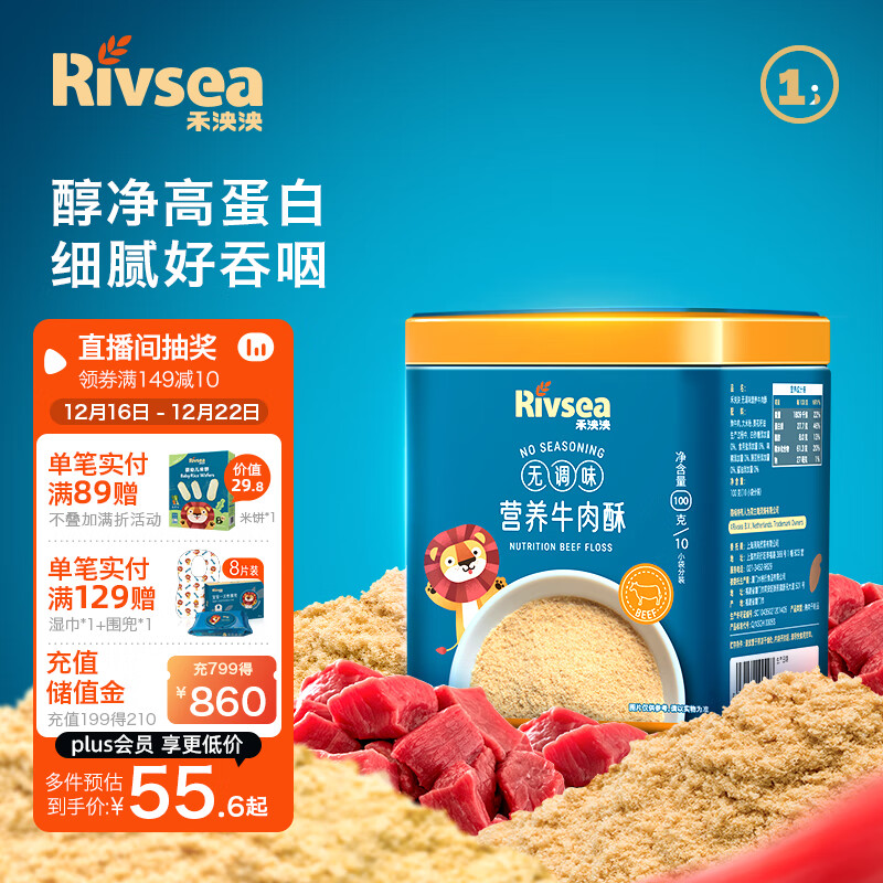 禾泱泱肉酥 宝宝零食 拌面条米粉早餐搭档 营养高蛋白 无调味牛肉酥100g价格:69.00元!