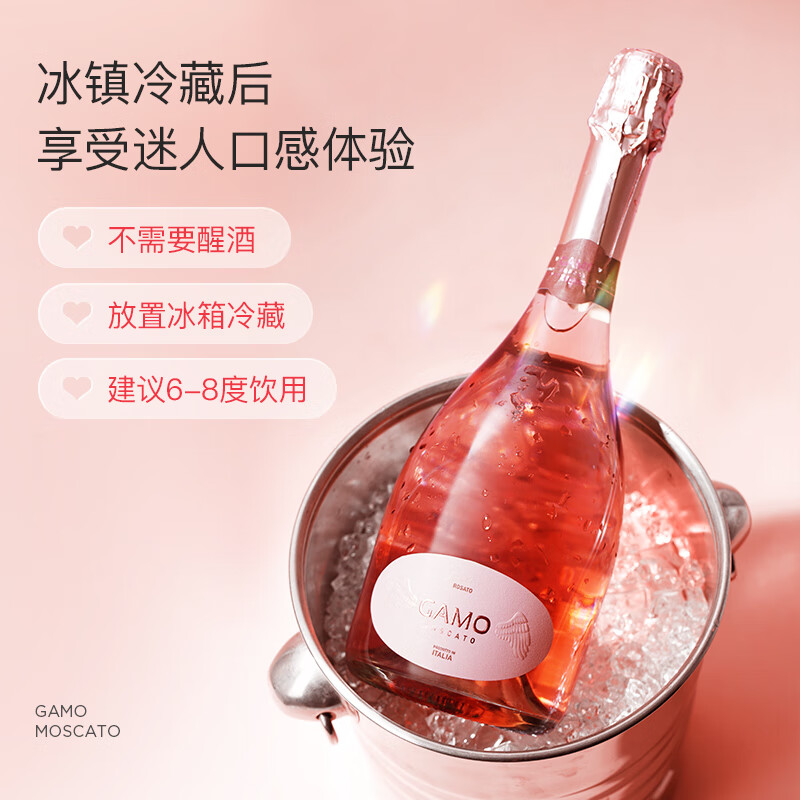 卡伯纳 意大利原瓶进口卡摩GAMO莫斯卡托桃红起泡气泡葡萄酒750ml*6整箱价格:378.00元!