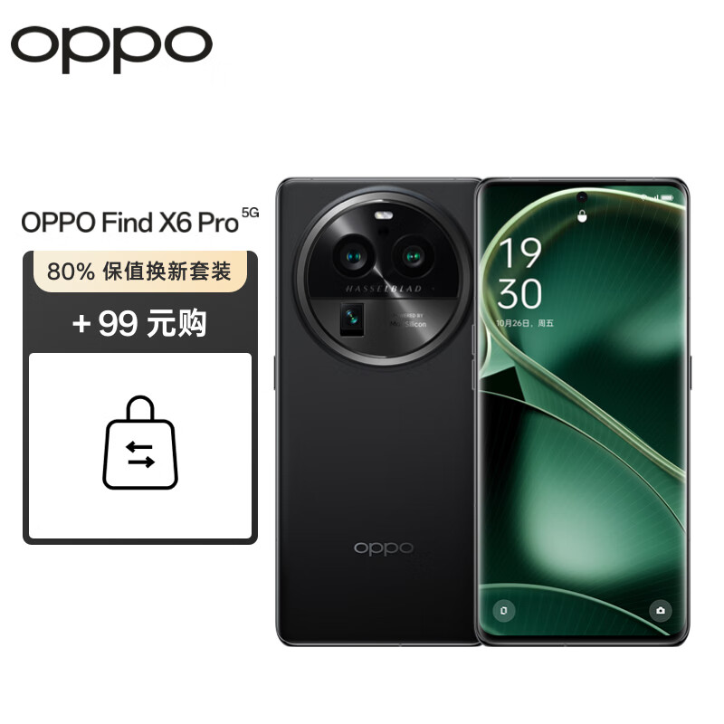 OPPO Find X6 Pro 16GB+512GB 云墨黑 超光影三主摄 哈苏影像 第二代骁龙8 5G手机【80%保值换新套装】价格:7098.00元!
