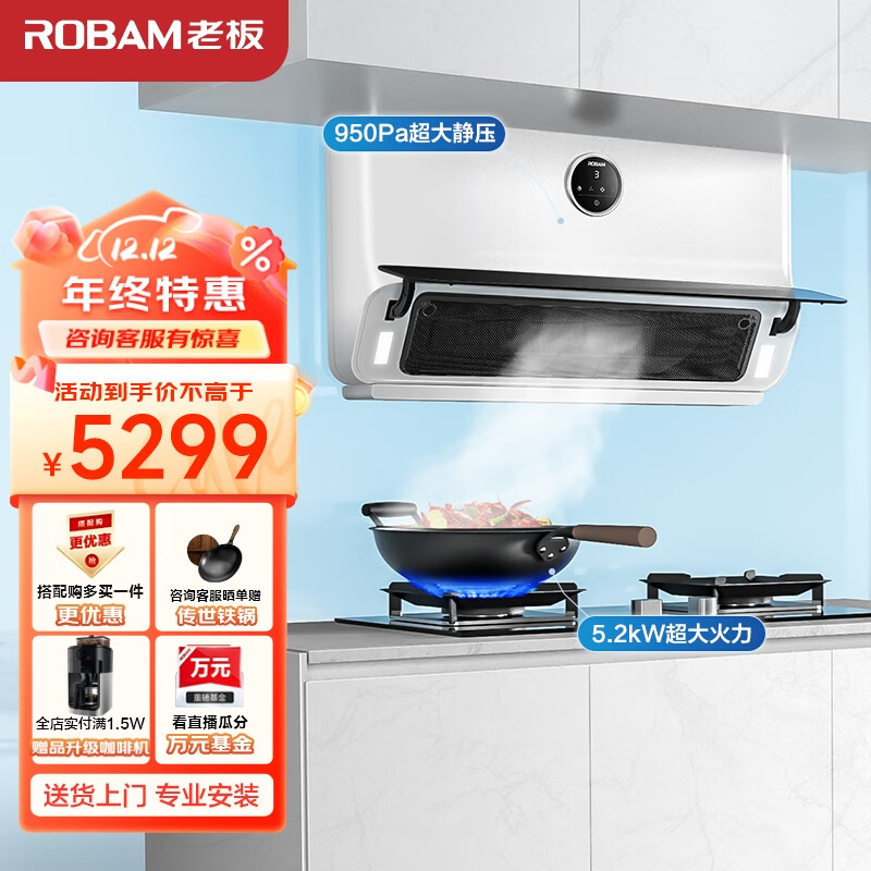 老板(Robam)抽油烟机A3S白色超薄近吸烟机80cm小尺寸23风量家用变频灶具燃气灶烟灶套装22A3S+57B6D(天然气)价格:5299.00元!