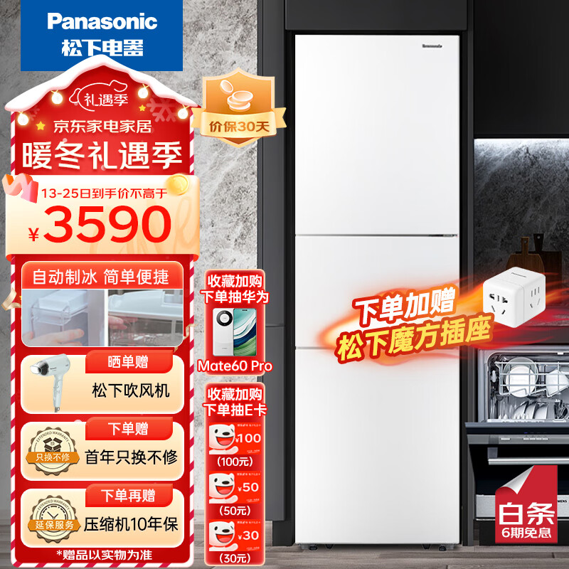 松下(Panasonic)303升三门冰箱京东小家智能生态一级能效银离子kang菌自动制冰家用冰箱NR-JS30AX1-W优选以旧换新价格:3590.00元!