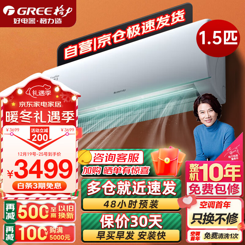 格力(GREE)空调挂机1.5匹 卧室空调 云锦Ⅱ 新一级能效 静音舒适 上下左右送风 挂机KFR-35GW/NhAd1BAj价格:3499.00元!