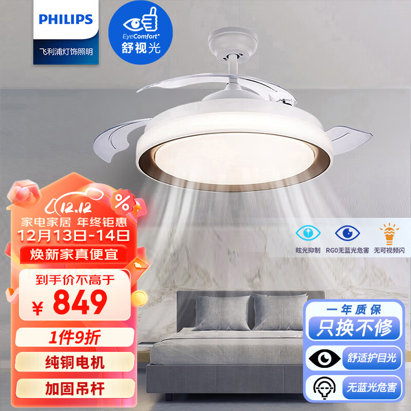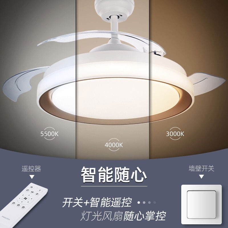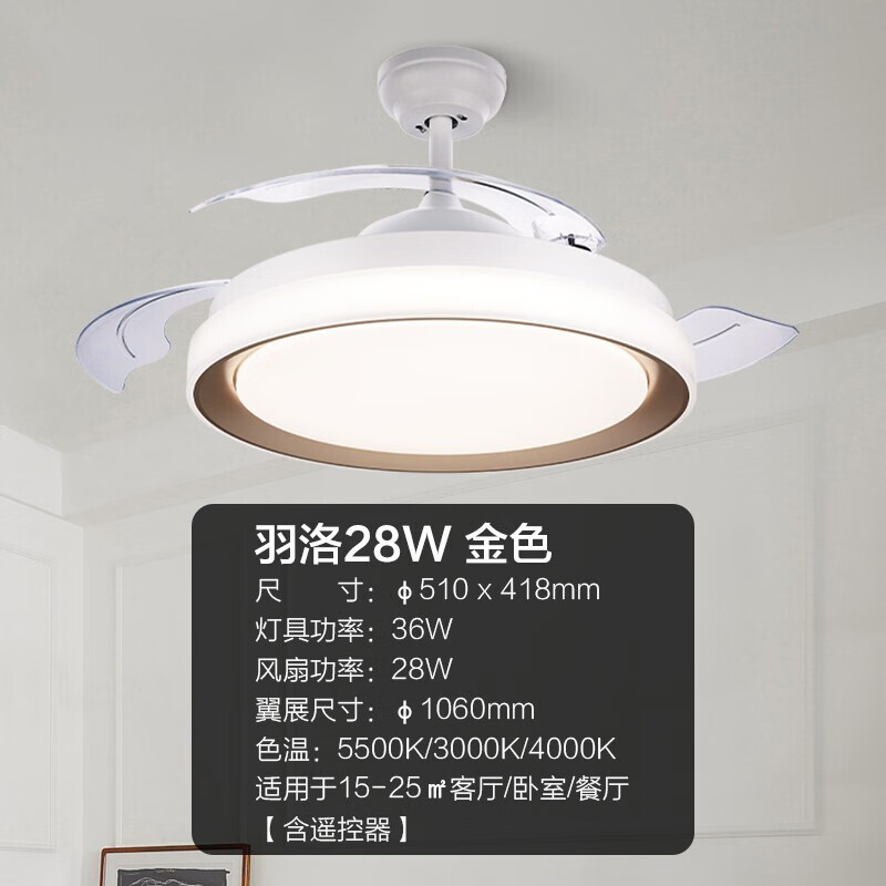 飞利浦(PHILIPS)led风扇灯吊扇灯吊灯餐厅卧室客厅简约带遥控调色28W+36W羽洛 金价格:1049.00元!
