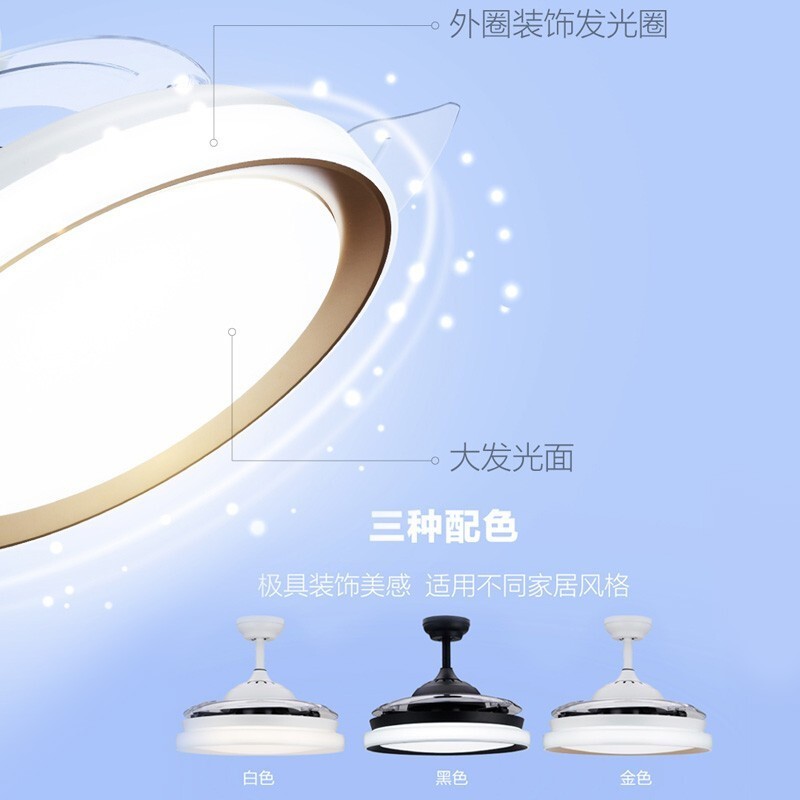 3、灯光有几种颜色可以调整风扇的速度也可以多让调整光线适度,而且使用方便送遥控器家里人非常满意,安装的时候也很方便,送货的速度非常快。