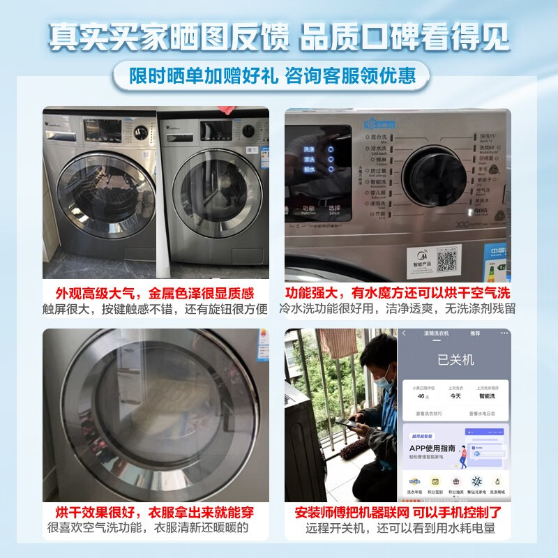 1、按照客服给的尺寸定的柜子,严实合缝的,洗烘套装真心不错,烘完的被子孩子说有阳光的味道,虽然是大热天非要让我烘被子盖,烘衣机收集毛毛效果很好,每次看到收集的毛毛就莫名的感觉被子衣服很干净,我的干衣机到货有点波折,但是好在京东售后跟得上,有很多团购也卖这款洗烘机,但是宁愿多花一点在京东买,因为放心