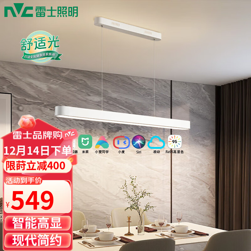 雷士(NVC)北欧LED智能吊灯餐厅灯时尚创意语音控制高显舒适光WHDD36F/G-01价格:949.00元!
