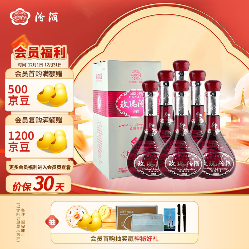 汾酒玫瑰汾酒玲珑 清香型白酒 40度 225ml*6瓶 整箱装价格:575.00元!