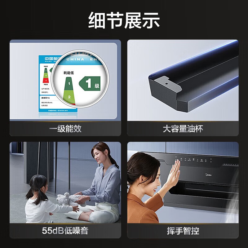 3、烟机非常漂亮,很喜欢,声音也不是很大,家里正在装修。很信赖美的的品牌。