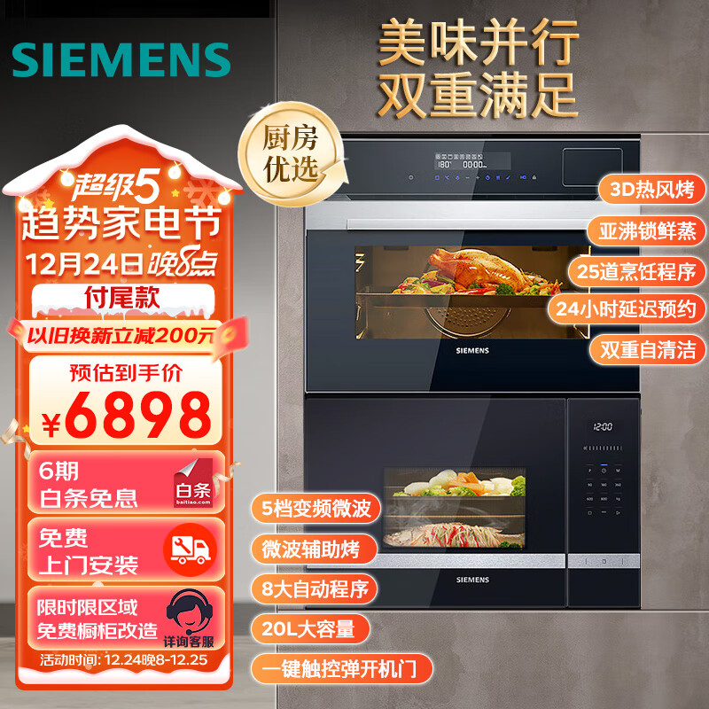 西门子(SIEMENS)微波炉嵌入式蒸烤箱一体机套装智能蒸汽烤箱蒸箱二合一BE525+CS389价格:6898.00元!