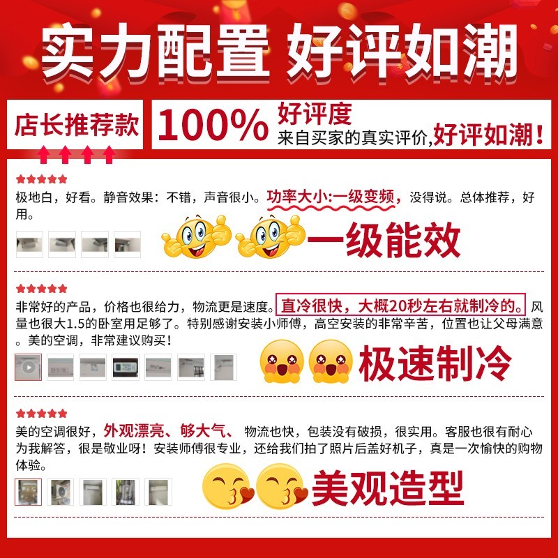 2、空调很漂亮,制冷效果非常之好,送货人员也很负责。速度也比较快。安装师傅人也很老实,大热天带着孩子一起来的,挺认真负责任的。空调各方面都不错。客服人员也很耐心,父母很满意。推荐购买!