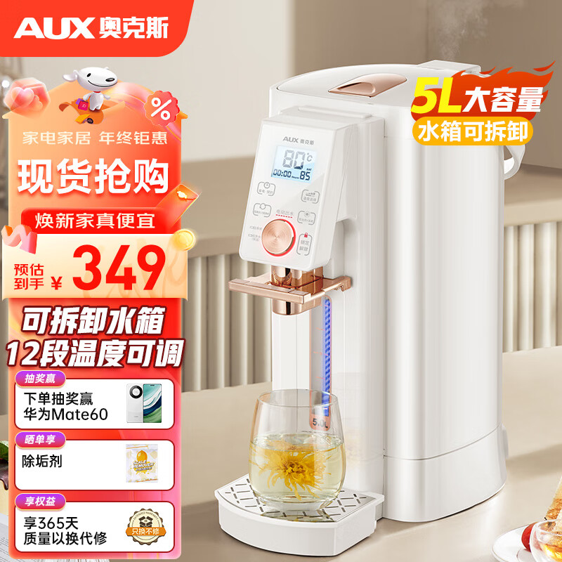 奥克斯电热水瓶 双层电热水壶烧水壶 5L大容量304不锈钢电水瓶 多段保温恒温电水壶8530F价格:349.00元!