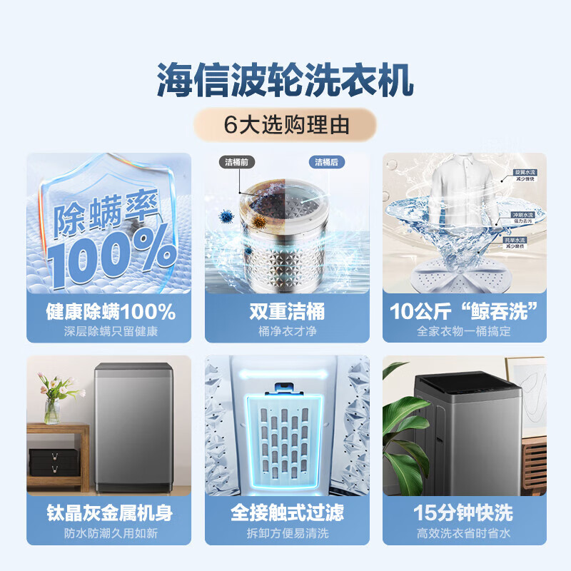海信(Hisense)波轮洗衣机全自动以旧换新10公斤升级钛晶灰大容量 家用租房 健康除螨洗 桶自洁 HB100DF56以旧换新价格:1029.00元!