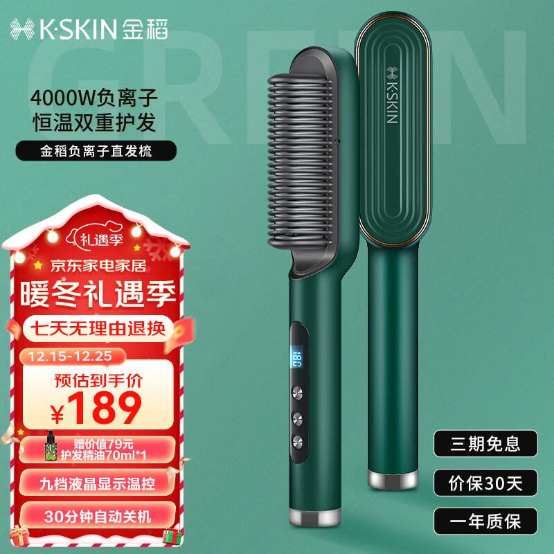 金稻直发梳负离子夹板卷发棒内扣直板夹造型梳子 4000万负离子护发礼物女 KD380K绿色价格:249.00元!