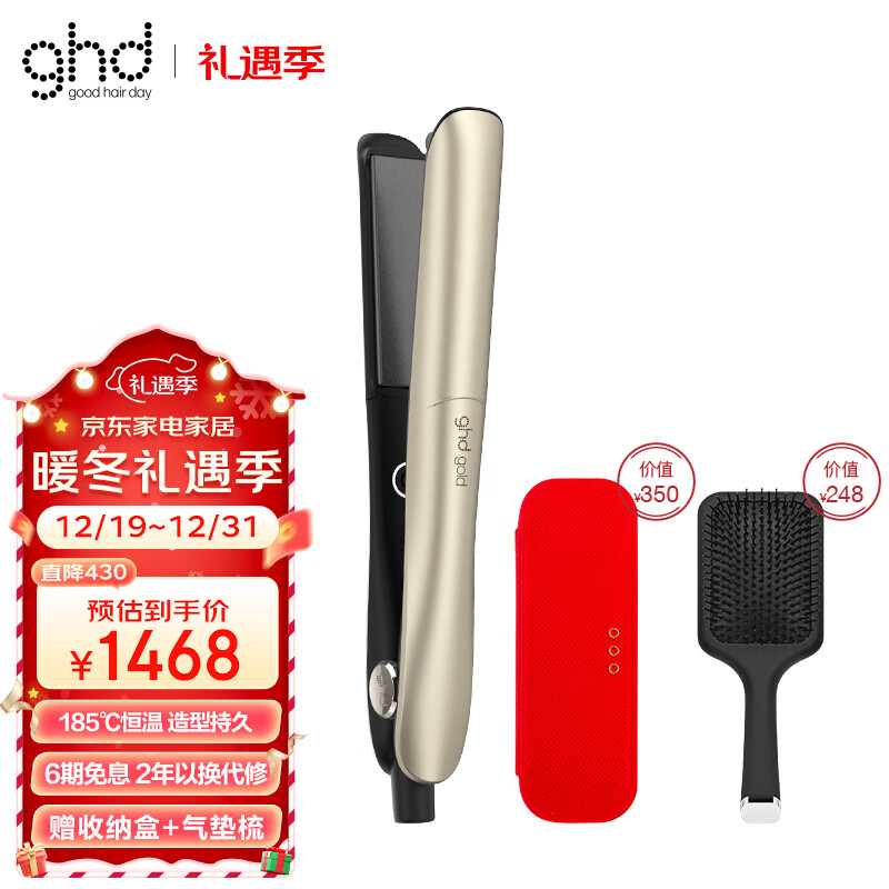 ghd黄金gold直板夹 185℃恒温减少热损伤 直卷两用防烫直发器拉直板 金色直板夹+限量礼盒 礼物高级感价格:1468.00元!