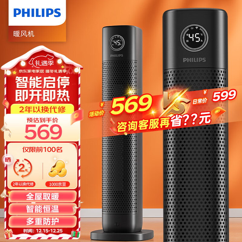飞利浦(PHILIPS)取暖器家用暖风机电暖气电暖器电暖风浴室热风机多档恒温速热节能APP遥控定时烤火炉价格:749.00元!