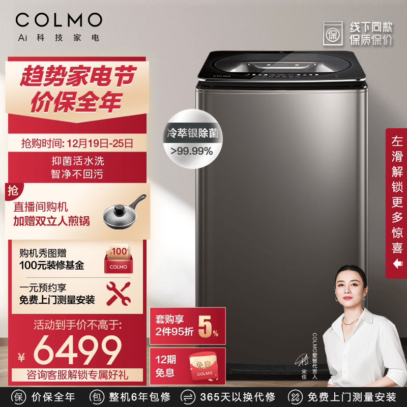 COLMO 全自动波轮洗衣机 11公斤大容量 AI超感知 冷萃银除菌 登陆舱式减震 智能家电 画境系列CLTW11X价格:6499.00元!