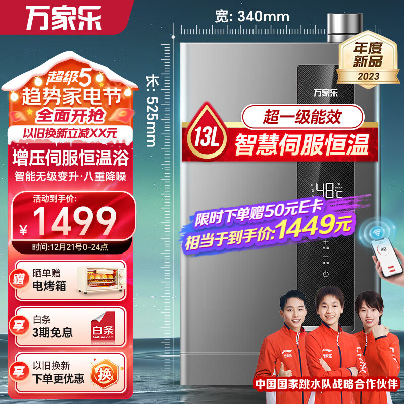 万家乐(Macro)RU5燃气热水器一级能效智慧伺服恒温 八重降噪静音舱双增大水量直流变频智能变升WIFI远控电辅防冻 【一级节能省气】JSLQ22-13RU5(F)价格:1699.00元!
