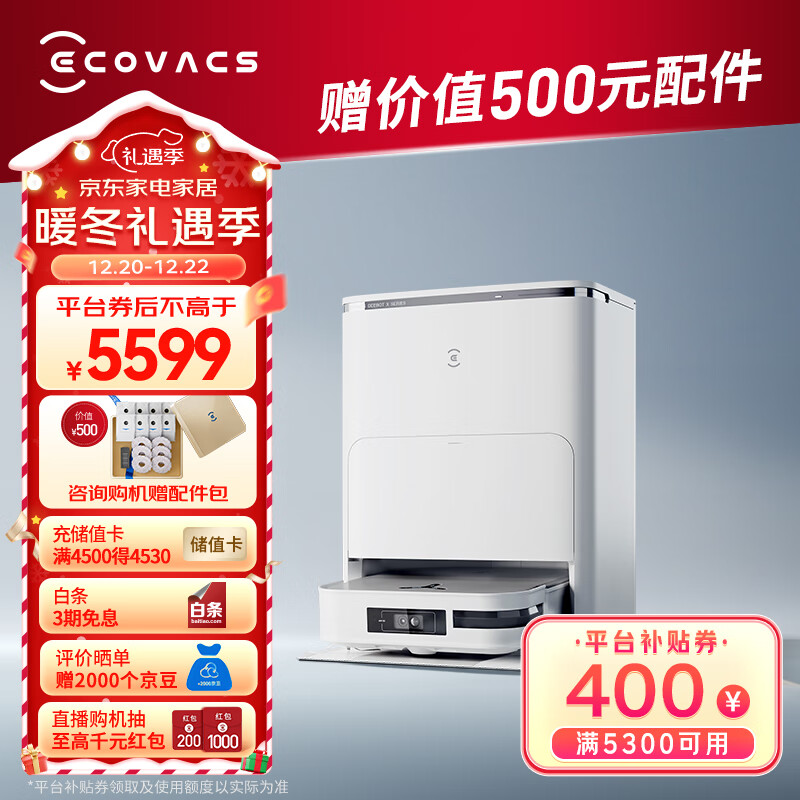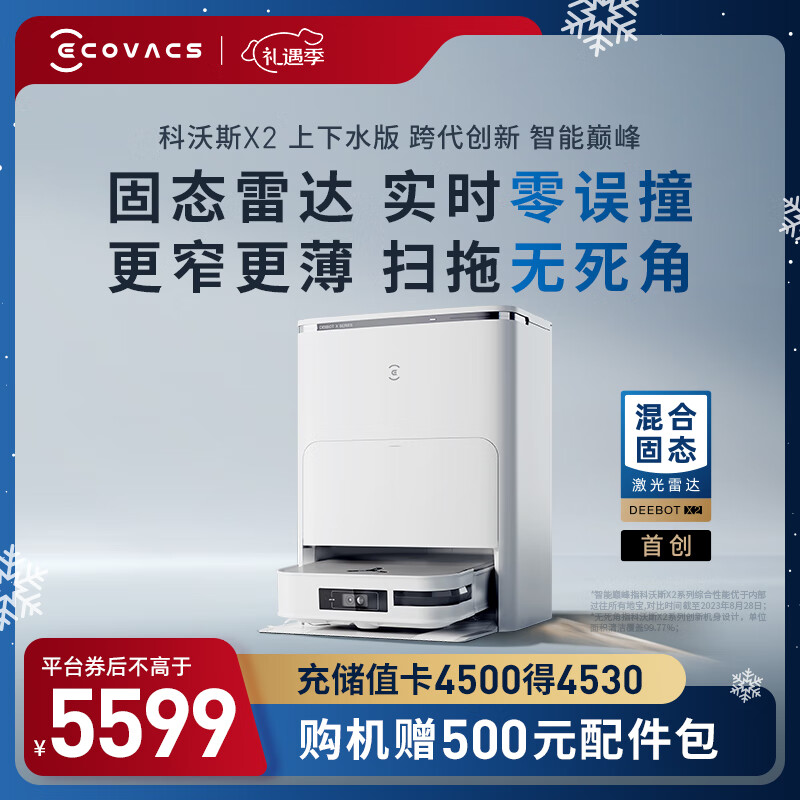 科沃斯(ECOVACS)X2上下水版扫地机器人智能家用扫拖一体自动清洗自动集尘热水洗抹布上下水-皓月白DEX86-12EA价格:5999.00元!