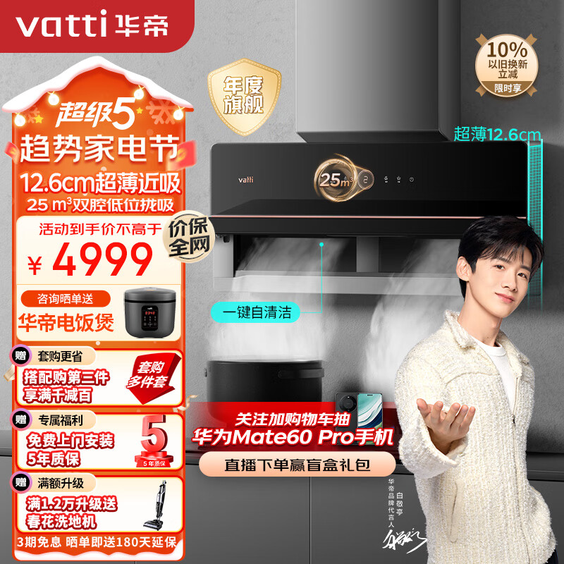华帝(VATTI)抽油烟机理想家X6超薄近吸25风量吸油烟机灶具燃气灶烟灶套装分区烹饪i11210+62B(天然气)价格:4999.00元!
