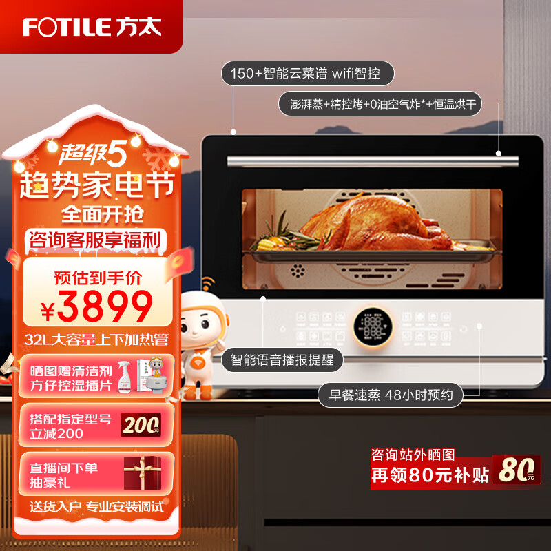 方太蒸烤箱一体机台式家用多功能32L电蒸箱烤箱一体空气炸锅蒸烤烘炸炖5合1上下独立控温小方盒01-A1.i价格:3899.00元!