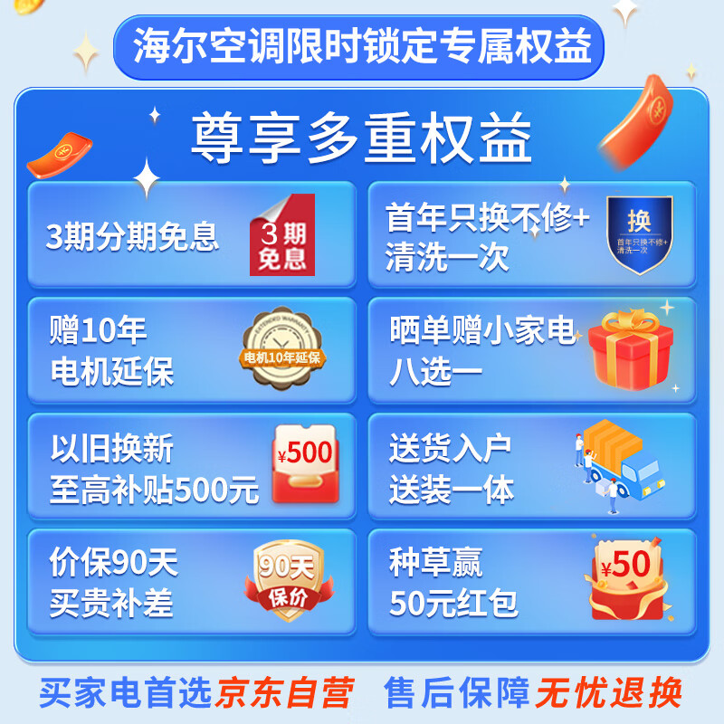 3、618下的单到货安装好6月26师傅安装非常到位,干活利索,态度客气。空调简洁比较静音。家里空调都是海尔的,老品牌值得信赖!一级能效,空调制冷很快,非常奈斯!颜值很高