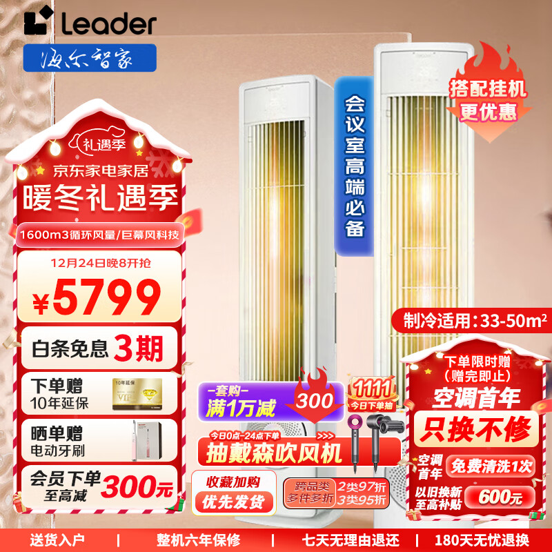 统帅(Leader)空调海尔空调出品 新一级能效3匹变频冷暖WiFi智控立柜式空调风幕大出风口 NFC 以旧换新72VEA价格:5499.00元!