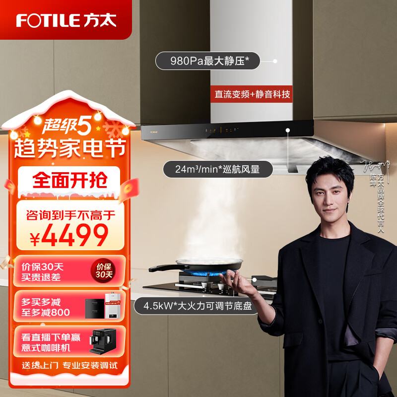 方太抽吸油烟机灶具套装 欧式顶吸排烟机燃气灶套餐 24巡航风量直流 家用烟灶EMQ6T+02-HT8BE.S天然气价格:4498.00元!