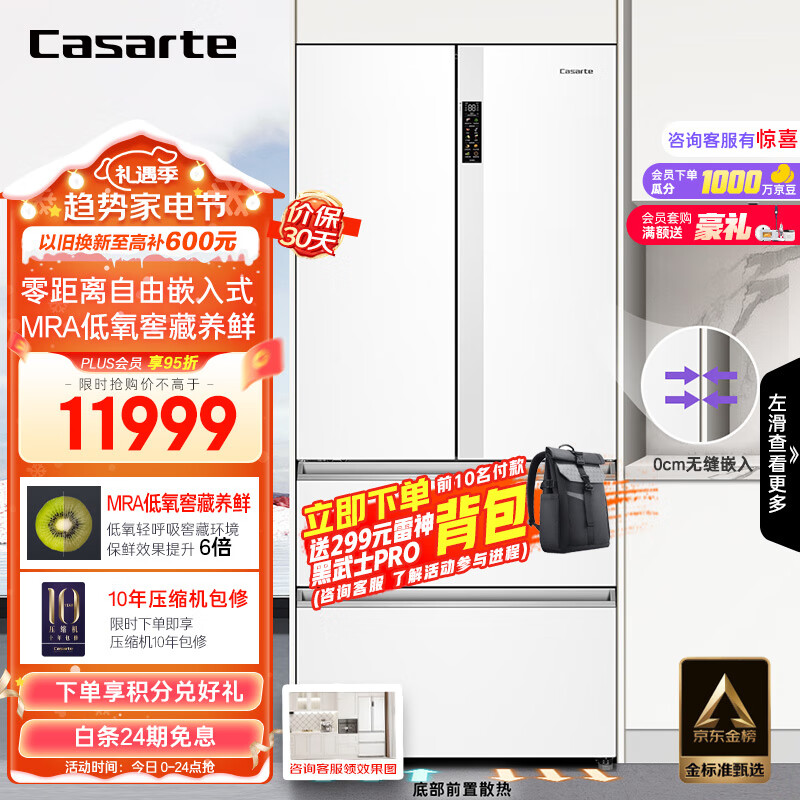 卡萨帝(Casarte)550升纯白零嵌法式多门白色家用大容量揽光502姐妹款超薄嵌入电冰箱变频BCD-550WGCFDM4WKU1价格:11999.00元!