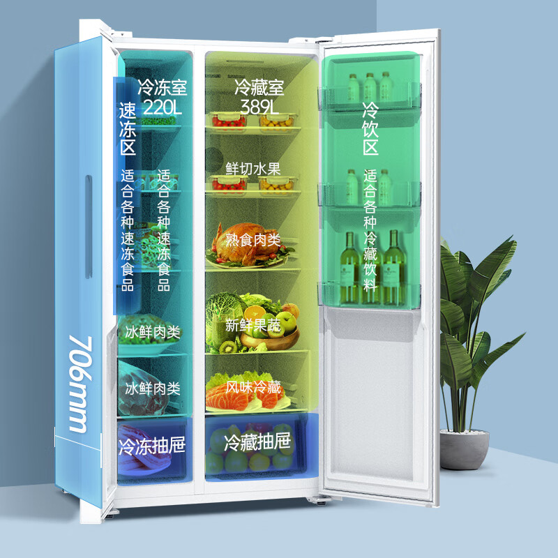 2、外形外观:高大上制冷效果:智能化保鲜效果:新鲜蔬菜容量大小:大