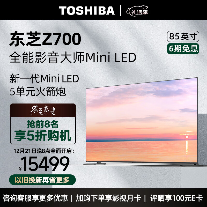 东芝电视85Z700MF 85英寸高端Mini LED 4K144Hz高刷屏65w火箭炮音响 客厅液晶平板游戏电视机 以旧换新价格:15499.00元!