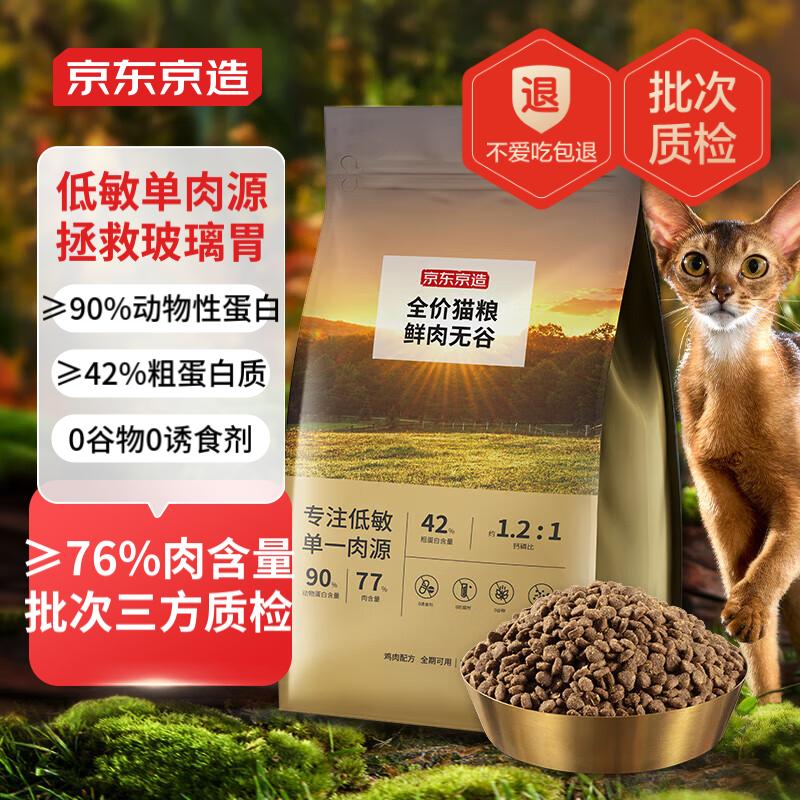 商品名称:京东京造单一肉源鸡肉配方全价全期无谷猫粮6kg