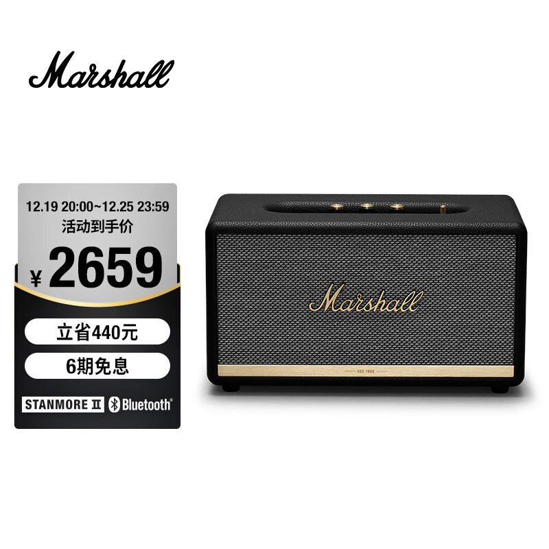 MARSHALL(马歇尔)STANMORE II BLUETOOTH音箱2代无线蓝牙家用重低音音响 黑色价格:3099.00元!
