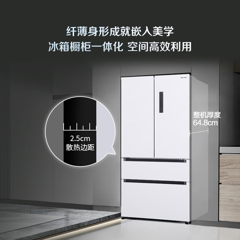 5、外形外观:专门选的白色冰箱,刚好搭配橱柜,选了好久这款颜色刚刚好容量大小:容积有570升,够大,可以放很多东西,双开门的也很方便保鲜效果:效果不错,冷气足
