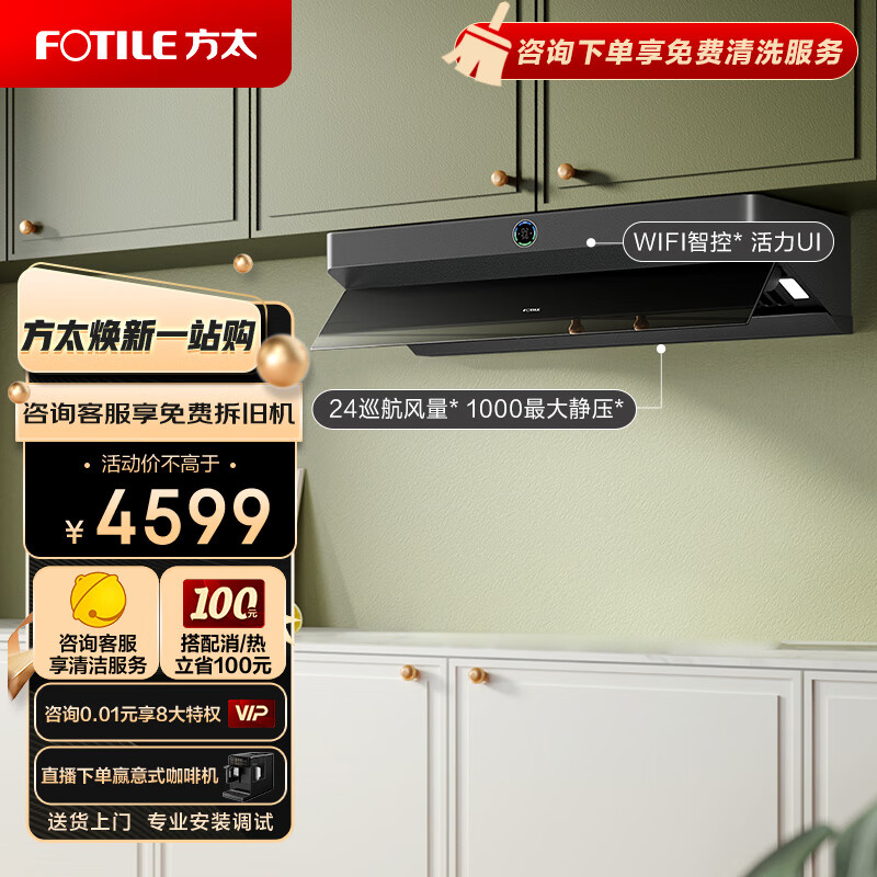 方太(FOTILE)欧式顶吸式抽吸油烟机 顶侧一体 24大风量 直流变频 家用厨房脱排油烟机 F2.i价格:4599.00元!
