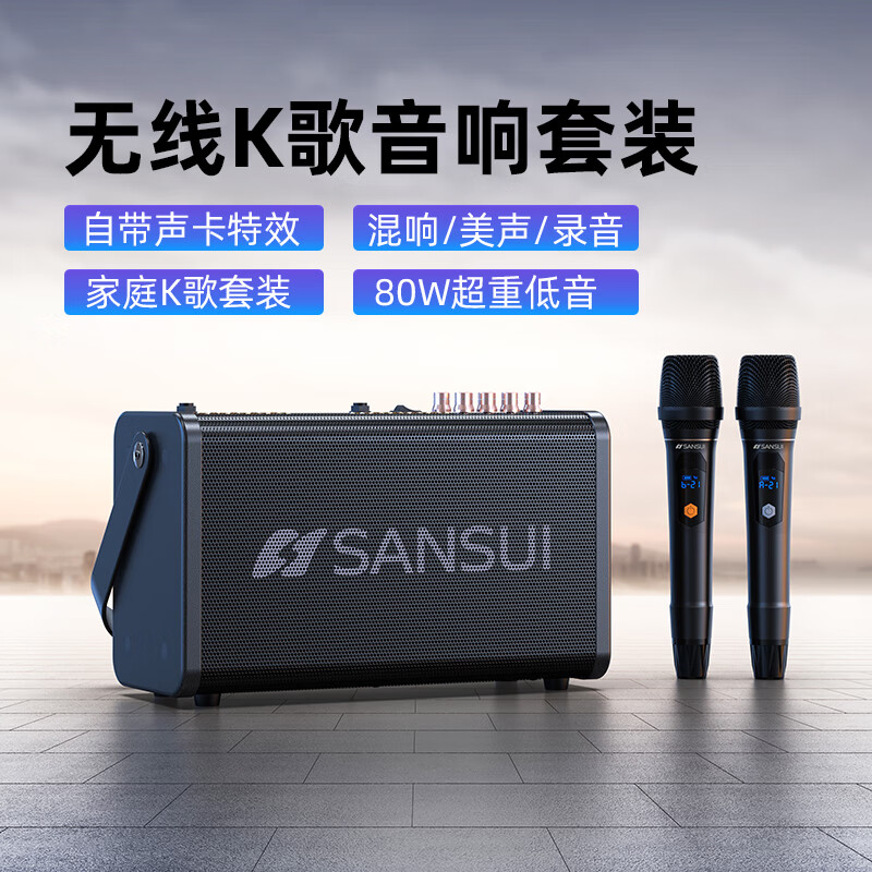 山水(SANSUI)便携式手提音箱广场舞音响带KTV无线话筒小型直播k歌音响移动户外大功率声卡卡拉OK音箱 E73价格:1880.00元!