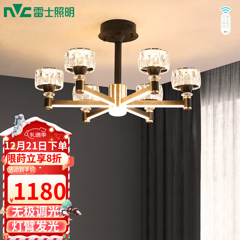 雷士(NVC)美式轻奢现代客厅灯灯臂发光具吊灯无极调光6头灯饰WHDD60F/G-02价格:1475.00元!