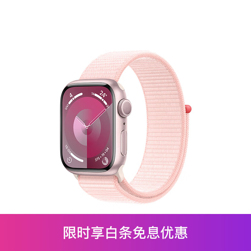 Apple Watch Series 9 智能手表GPS款41毫米粉色铝金属表壳 亮粉色回环式运动表带 S9 MR953CH/A【免息版】价格:2999.00元!