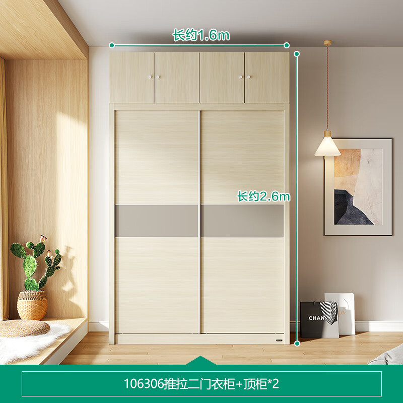 全友家居 现代简约卧室推拉门衣柜储物柜106306 二门衣柜+顶柜*2价格:3427.00元!