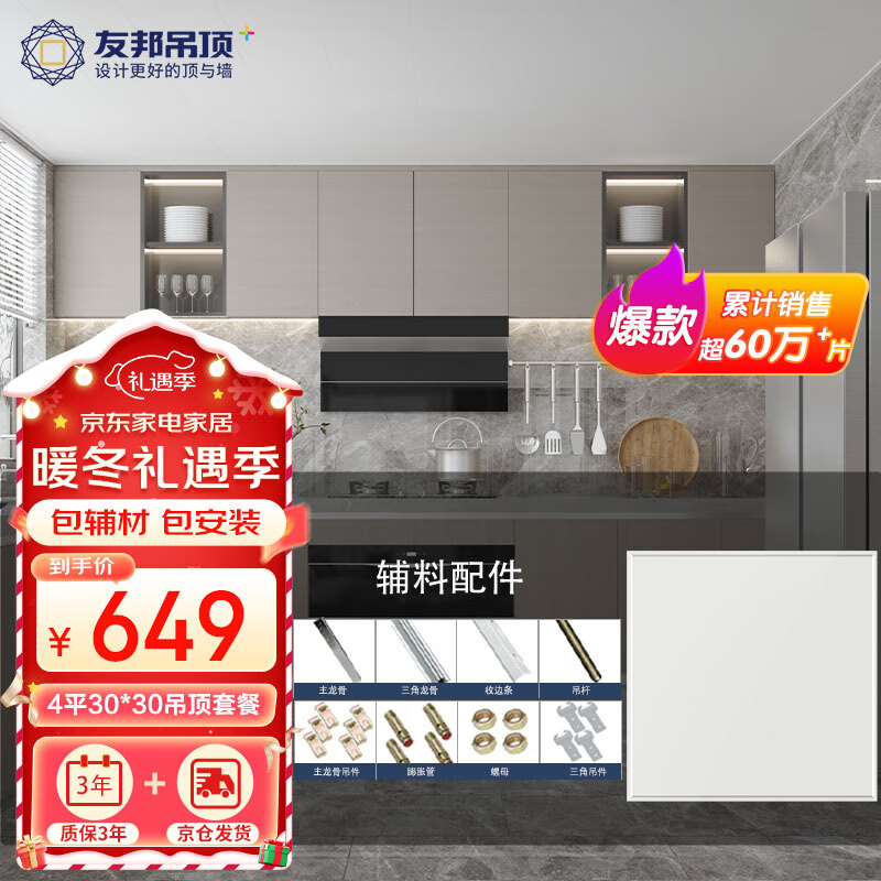 友邦(YOUPON) 集成吊顶铝扣板厨房阳台卫生间吊顶铝扣板天花板材料套餐包安装 主推4平【芳华】XD1467价格:999.00元!