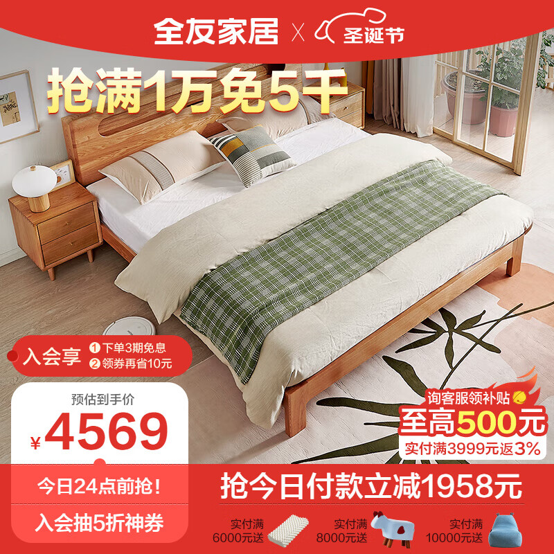 全友家居 实木床 北欧卧室家具实木双人床 进口北美橡木框架床DW1008价格:6527.00元!